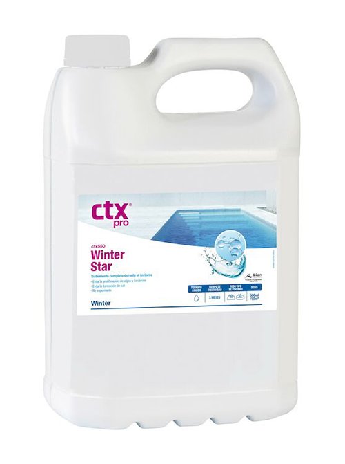 Tratamiento de invierno que previene la proliferación de algas y bacterias. El WinterStar de CTX no produce espuma y es compatible con todo tipo de tratamientos de desinfección y con todos los sistemas de filtración. Es efectivo durante 3 meses.